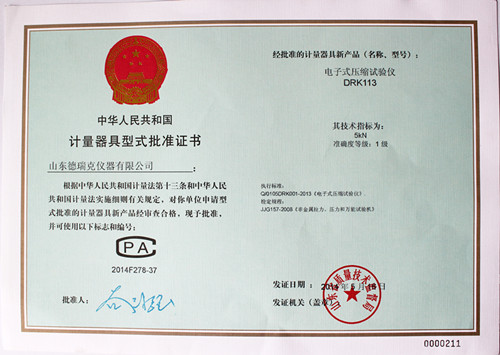 近日,德瑞克接到市局通知,在濟(jì)南市質(zhì)量技術(shù)監(jiān)督局一樓計(jì)量器具型式許可證窗口領(lǐng)取到了電子拉力試驗(yàn)機(jī)型式批準(zhǔn)證書(證書編號(hào)2014F376-37),加上之前領(lǐng)取的電子式抗壓試驗(yàn)機(jī)(證書編號(hào)2014F277-37)、電子式壓縮試驗(yàn)儀(證書編號(hào)2014F278-37)的型式批準(zhǔn)證書,至此,德瑞克涉及的國(guó)家法定監(jiān)管的計(jì)量產(chǎn)品已全部獲得證書。